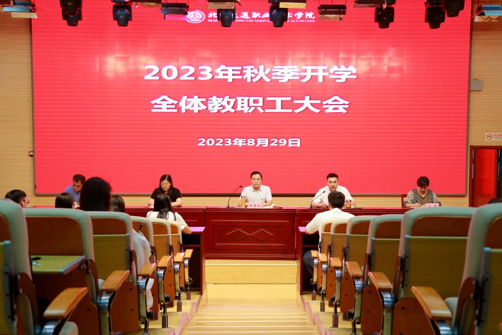 8月29日,beat365在线唯一官网登录2023年秋季开学全体教职工大会在报告厅举行。学院党委班子成员出席会议,全体教职工参会。会议由党委副书记、副院长李大泳主持。