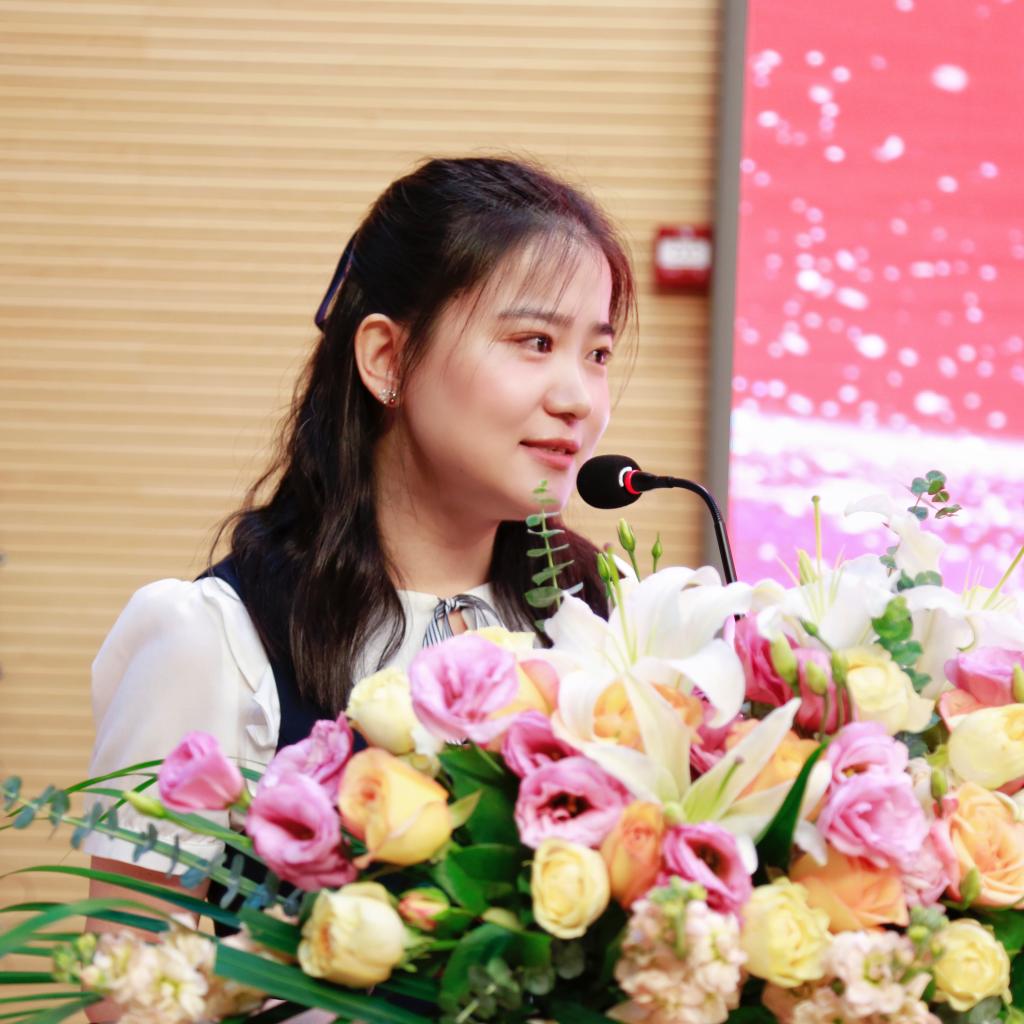 任课教师代表徐晶晶老师分享了与学生们一同学习、共同成长的点点滴滴,鼓励毕业生们在未来的道路上继续保持学习的热情和进取的精神,勇敢追求自己的梦想,不断超越自我。