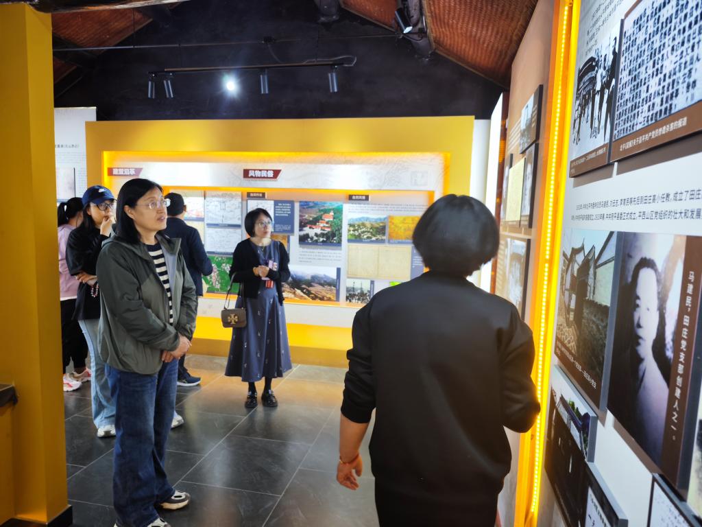 离开菩萨鹿村后,调研团队马不停蹄地来到了狼儿峪村。在村委会工作人员邱老师的引导下,大家怀着崇敬的心情,依次参观记录了“昌宛联合县武装部旧址”“昌平区全民国家安全教育基地”“昌宛联合县革命历史展馆”。展馆内,一件件珍贵的文物、一幅幅生动的历史照片,仿佛将大家带回到了那个战火纷飞的年代。邱老师声情并茂的讲解,让每一位成员都深受触动,民族自强与团结奋进的情绪在心中油然而生。大家不仅用心感受着革命先辈们的英勇事迹和伟大精神,还对展厅中的“汆子”“马镫”“油灯”“水壶”等老物件进行了详细记录。这些老物件承载着丰富的历史文化内涵,将为后续的文创产品设计与开发提供宝贵的素材和灵感。