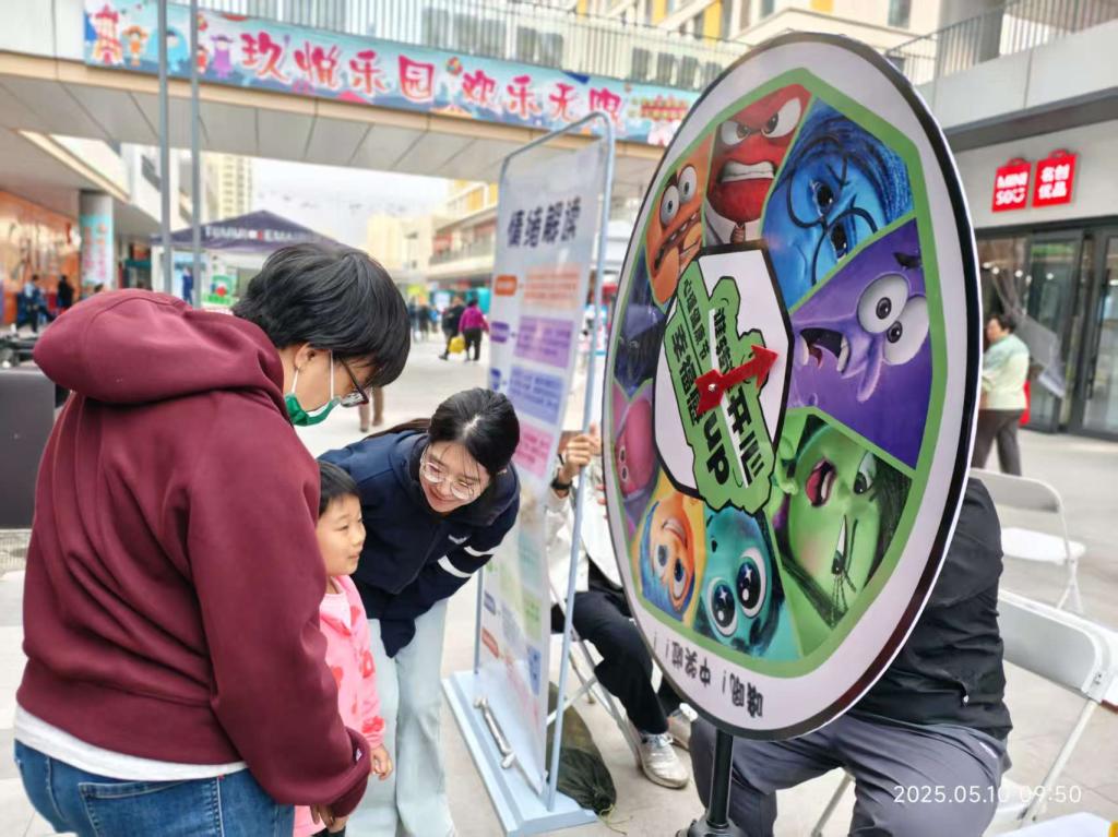 心理健康协会设立的情绪解答展台成为活动中的一抹温暖亮色。考虑到小朋友们的参与需求,心理健康教育中心老师及心理健康协会的志愿者设计了一系列趣味游戏,如情绪转盘认知、表情模仿猜情绪等。小朋友们踊跃参与,在游戏过程中,师生们引导他们认识不同的情绪,学会正确表达和调节自己的心情,同时帮助家长更好地关注孩子心理健康,促进亲子间的理解与沟通。