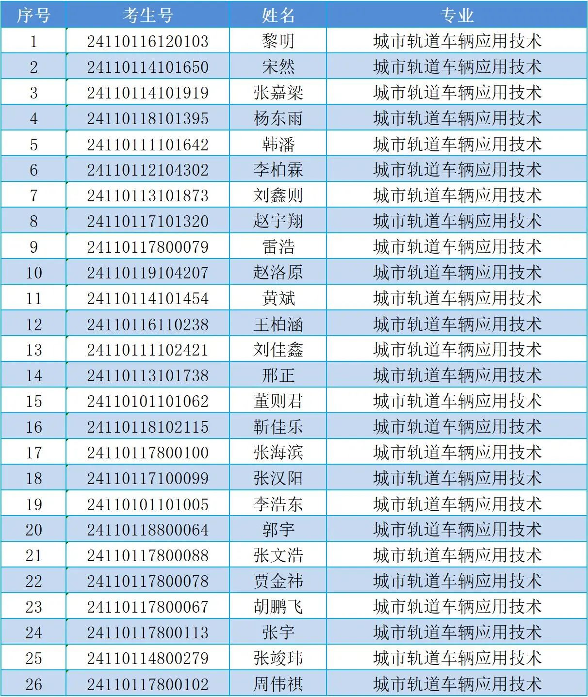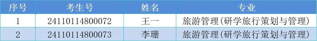 录取名单公示