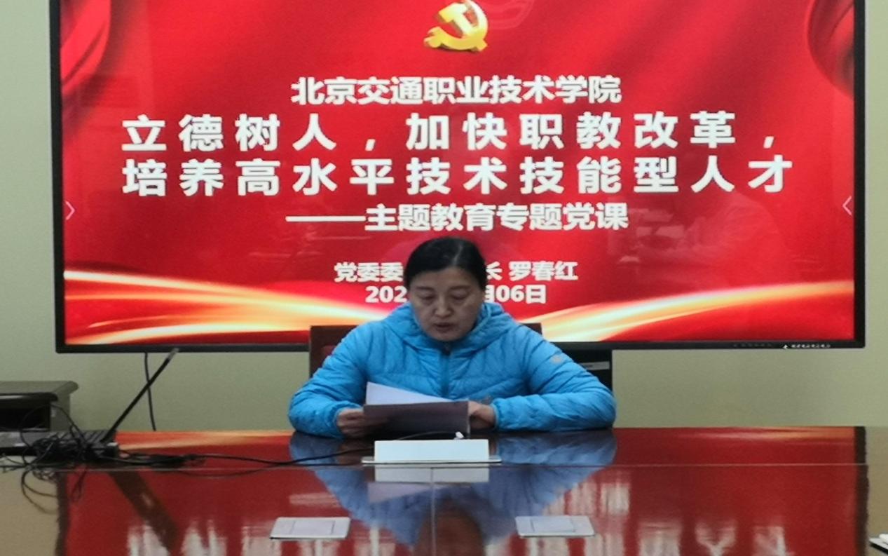 2023年11月6日,学院党委委员副院长罗春红同志以“立德树人,加快职教改革,培养高水平技术技能型人才”主题,在会议室为学院教学系统党员干部讲党课,教务处党支部全体党员及各系部主任等党员干部参加。