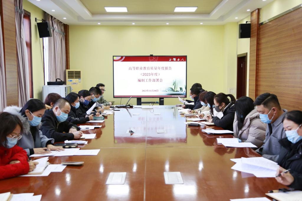 11月30日,学院在办公楼一层召开beat365在线唯一官网登录开展高等职业教育质量年度报告(2023年度)编制工作部署会。学院领导班子、有关编制部门负责人及联络人参会。党委书记、院长林海波发表重要讲话,学院党委委员、副院长罗春红主持会议。