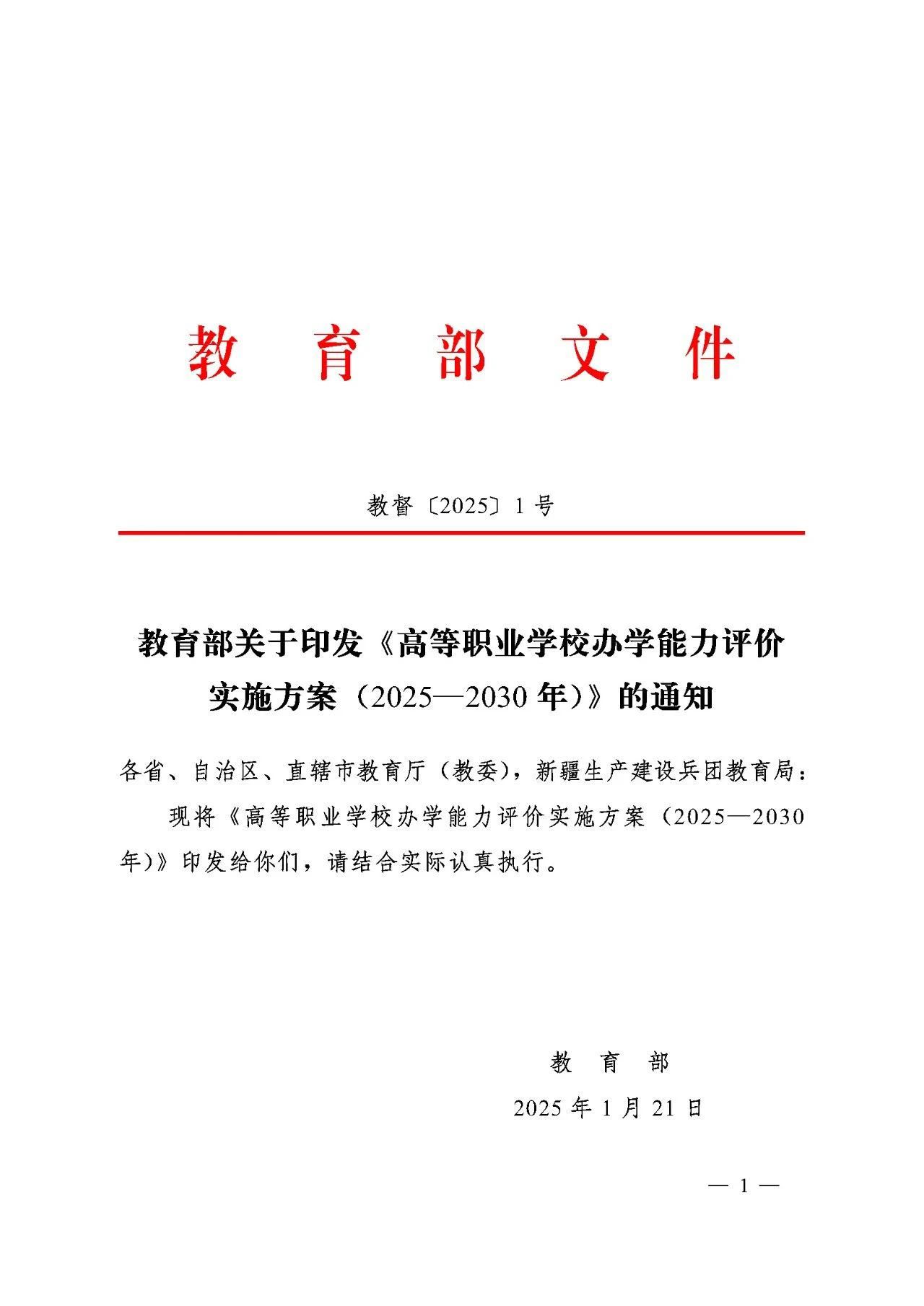 教育部关于印发《高等职业学校办学能力评价实施方案(2025-2030年)》的通知