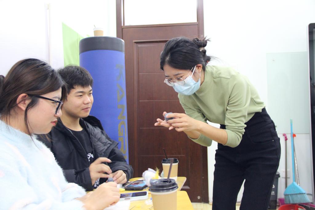 活动开始前,心理健康协会的志愿者们为同学们准备了暖心热饮以及减压音乐,为同学们营造了温暖舒适的活动氛围。心理健康教育中心张梦元老师准备了丰富的表情包,邀请同学们进行选择,表达自己最近的情绪。同学们通过表情包直观表达,互相分享心情,轻松自然,缩短了社交距离。活动过程中,在同学们通过教程视频了解了羊毛毡制作工具的使用方法,利用两根特质钢针、一块泡沫板、数团彩色羊毛,尝试动手练习。同学们仔细观看教程步骤并逐渐掌握羊毛毡手工制作技巧,热火朝天地戳了起来。在遇到困难时同学们除了召唤老师和志愿者,还借助群体力量,互帮互助。钢针上下戳动,作品逐渐成形,现场充满了欢声笑语,活动气氛十分欢快。
