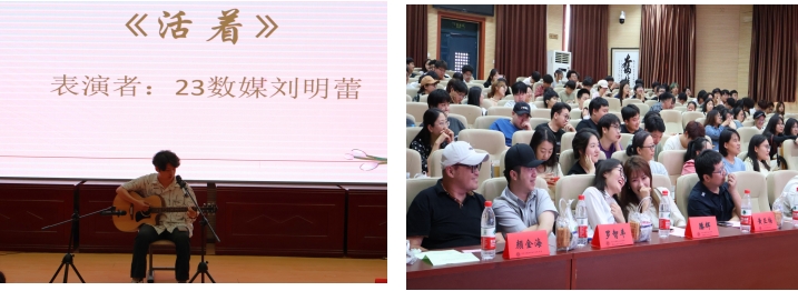 随后,朱子墨和郑嘉岚为同学们带来了精彩的歌曲表演,现场气氛热烈;心理健康协会同学们演绎的心理情景剧《军师恋盟》关注了大学生的恋爱中的困惑,鼓励大家突破表达的困境,真诚表达,同学们真挚的演绎赢得阵阵喝彩。在激动人心的抽奖环节,领导老师们为同学们启动程序,抽出本场活动的幸运观众,获得学院提供的暖心礼品,全场气氛也沸腾了起来。抽奖环节过后,领导老师们为在各项活动中获奖同学进行了颁奖。曹兴同学为大家带来了歌曲《忽而今夏》,动人的歌声让同学们感受到了年少与盛夏的美好。青蛙《惊鸿舞》也给同学们带来了很大惊喜。龚明琪一曲《如果爱忘了》婉转动听。严超、吴佳益、刘梓桐、王一涵、孙志浩、吴欣怡带来额朗诵《密码》,以党史为脉络,穿梭于各个场景中,带领听众一起回忆红色历史,一同缅怀英雄先烈。伴随着刘明蕾的吉他弹唱歌曲《活着》,我院第19届“5·25”大学生心理健康节闭幕式暨颁奖典礼落下帷幕。