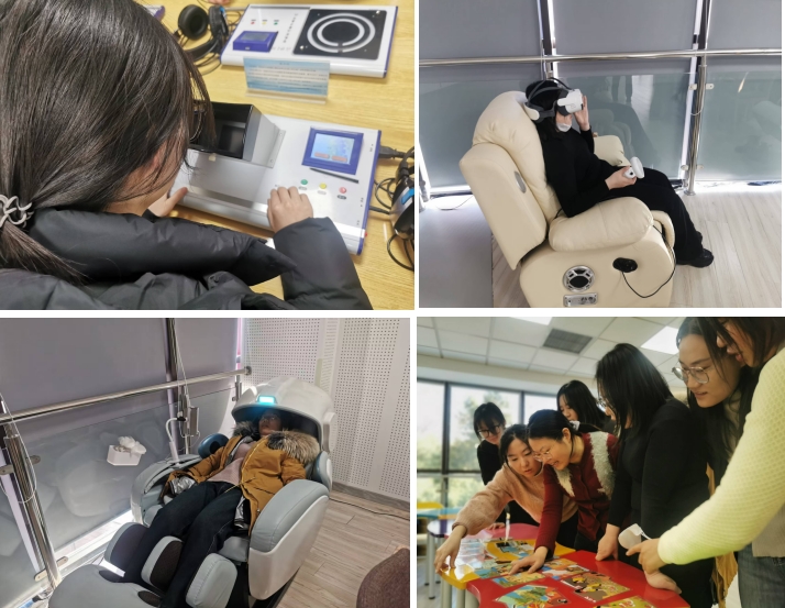 本次活动在北京市青年宫老师们的带领下有序进行。在科普展中,通过体验情绪识别与微笑训练系统、心理自助服务系统、互动宣泄系统、行为认知系统、“错觉图”等,大家对自身的健康状况、心理状态和心理能力有了更加专业的了解。在心理设备体验室环节,减压太空舱、VR放松设备、心理科普仪器、沉浸式放松体验缓解了老师们的疲惫。在心理卡牌“盗梦空间”的团体活动中,老师们从卡片的抽取到团队之间的彼此交流,策略商定,全力思考描述。每个人都沉下心去聆听伙伴们的表达,彼此之间相互感知,理解对方表达的内容,在一次次的耐心确认与沟通后,慢慢的将手中“碎片”一样的画面,拼凑成一个“神奇故事”,也在集体智慧碰撞中发现了高效协作的秘诀。