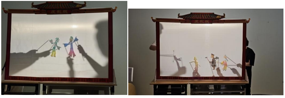 在皮影戏演出环节,同学们充分发挥创意,共同构思剧情走向,让故事拥有了圆满且符合内心期望的结局。演出过程中,大家相互配合,默契十足,共同完成了精彩的皮影戏表演,并定格下 “杀青” 剧照,留下美好瞬间。