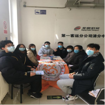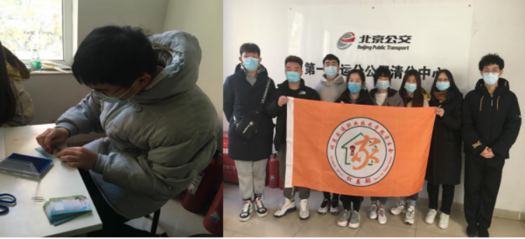 到了芍药居公交卡办理点公交总站后,大家领取卡片等资料后很快进入工作状态。为了能更高效的完成这次任务,大家提前学习了工作流程,并根据各自的特长提前分配了工作任务。工作流程总共分为 6个环节。其中包括:加盖印章、填写学生信息、修剪粘贴照片、贴防伪标签、贴卡片、贴公交卡保护膜。在这次贴卡片保护膜时,同学们都学习到了“一次贴四张的贴膜”技能,使办理公交卡速度有了很大的提高。最后检查无误后,按照专业班级将所有公交卡装入信封。