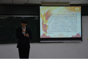 为全面反映党的十八大以来,在以习近平同志为核心的党中央带领下,全国各族人民砥砺奋进、真抓实干,中国经济社会发展取得的历史性成就,充分展示五年来中国人民更多的获得感、安全感、幸福感、自豪感,真实记录中华民族实现从站起来、富起来到强起来的历史性飞跃。我院组织部于12月21日15:30,在教一楼122教室,举办了以《辉煌中国》为主题的主题团课。