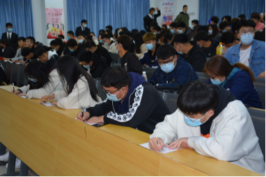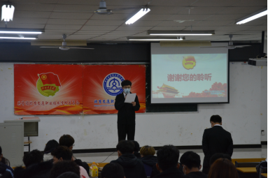 为了提高各基层团支部的凝聚力和创造力,进一步加强疫情期间团员青年的思想政治教育力度,强化团学干部的模范带头意识,促进全院青年团员进步提高,我院于2020年10月28日在教一楼122教室开展以“同心战‘疫情’青春勇担当”为主题的团课活动。为避免室内人员聚集,本次团课分为两场共300名同学报名参加。团课主持人分别由院国旗班王云同学和院广播站付昕玥同学担任。