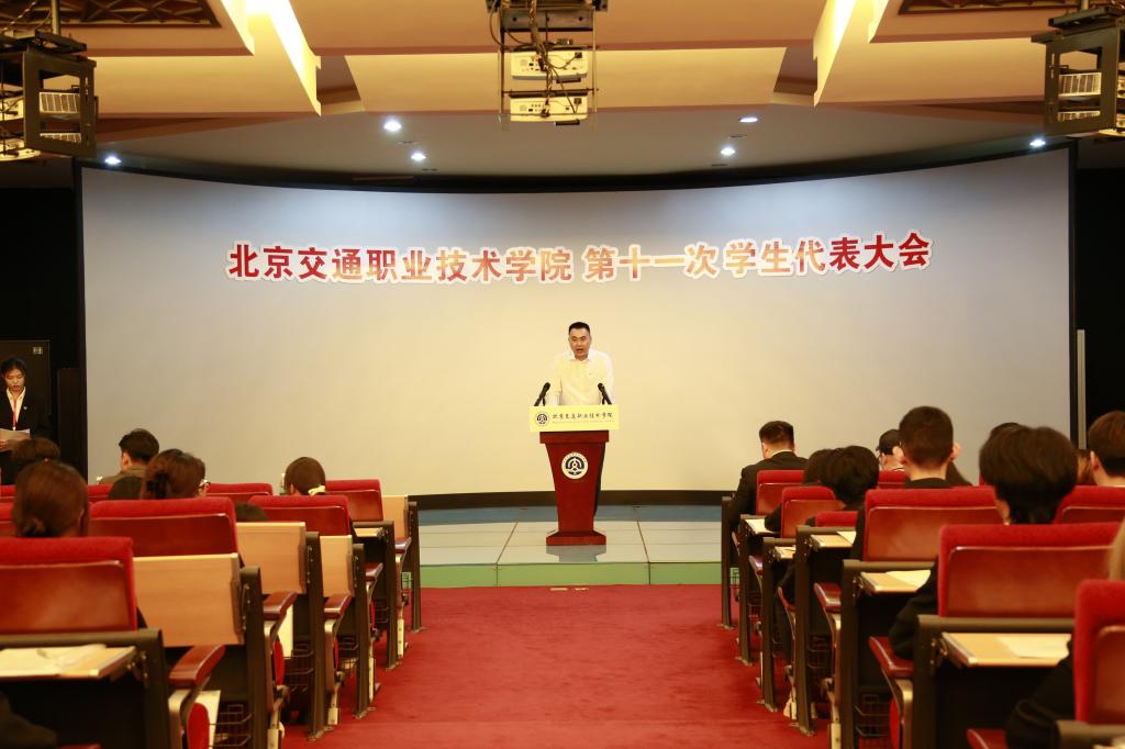 本次会议邀请到了学院党委副书记、副院长李大泳老师为本次学代会致辞并代表学院党委讲话。他向大会的成功召开表示热烈的祝贺,向同学们致以诚挚的问候和美好的祝愿。他高度评价过去一年中学生会的各项工作。他充分肯定了学生会过去一年引领全校青年思想进步、服务学生成长成才、有序参与校园治理等方面付出的努力和取得的成效。并与同学们分享了四点希望:一是希望大家筑牢理想信念,加强青年学生思想政治引领和价值引领,坚持不懈用习近平新时代中国特色社会主义思想武装青年,真理之光点亮青春之路,让理想成为指引交通学院青年成长进步的灯塔,在强国建设民族复兴新征程上唱响青春之歌;二是希望大家强化使命担当,落实好职业教育的使命和责任。要牢记大国工匠精神,秉承“至艺立人”的校训,肩负起“科技兴路,交通强国”的时代责任;三是希望大家练就过硬本领,在实践中接受锻炼、磨练意志,培养价值观和劳动品质,完善精神面貌,锻炼实践能力,提升综合素质,在中国式现代化建设中砥砺青春担当。四是希望大家勇于开创未来,要敢于打破常规,勇于突破传统思维的束缚,以创新的思路和方法解决问题。在困难和挑战面前不屈不挠,以敢于作为的姿态,书写奋斗的篇章。