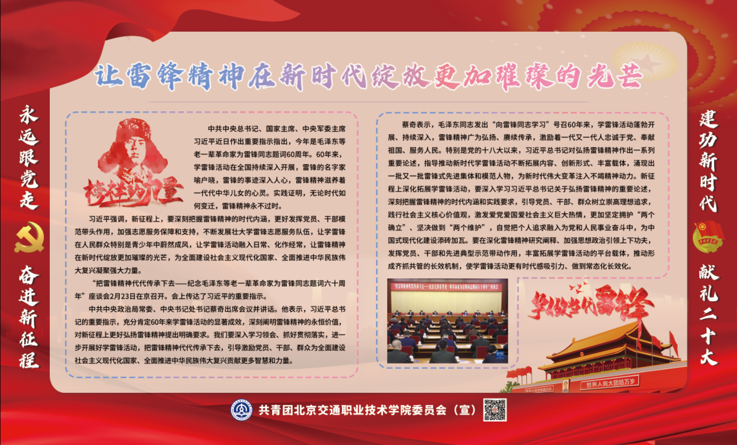 活动中,团委社会实践部闫子微同学带领全体同学首先观看了习近平总书记对深入开展学雷锋活动作出重要指示的新闻报道,并带同学们结合学院共青团工作实际围绕党的十八大以来习近平总书记对弘扬雷锋精神做出的一系列重要论述、毛泽东等老一辈革命家为雷锋同志题词的内容、雷锋同志的生平事迹和雷锋精神的时代内涵等方面展开了集中学习交流,同学们纷纷表示,以实际行动践行雷锋精神,争做时代新人,用自己的一言一行传承和弘扬雷锋精神,将雷锋精神化于心、践于行。