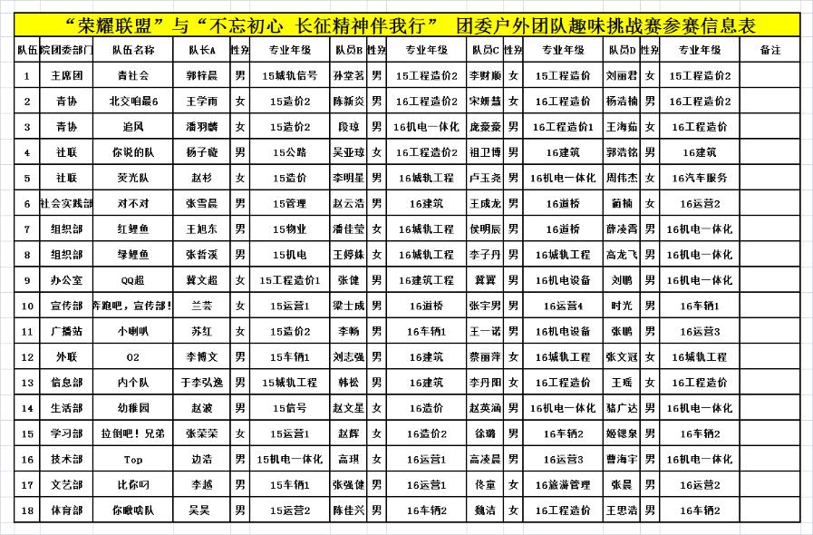 为丰富院团委、社团联合会、青年志愿者系会、院学生会学生干部机构的活动,增进交流和各机构之间的了解,使我院学生的户外活动更加多元化,提高我院团委学生干部各项素质,院学生会体育部于2016年11月17日在教一楼221教室举行beat365在线唯一官网登录“荣耀联盟”团委户外团队趣味挑战赛与“不忘初心 长征精神伴我行” 院团委青年户外挑战赛启动仪式,院团委老师颜金海、院团委各部、院学生会、青年志愿者协会、社团联合会各代表参加了本次会议。本次活动全院共18支队伍计72名学生参加。