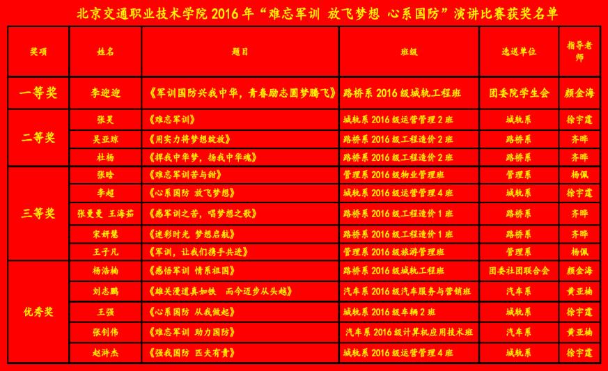 由院团委选送的李迎迎(路桥系16级城轨工程班)《军训国防 兴我中华 青春励志 圆梦腾飞》主题演讲荣获一等奖,她从容不迫的表现力、铿锵有力的嗓音,灵活的互动力征服了在座的每一个人,以充分的准备,沉着冷静的姿态展现了自己的个人才华;城轨系选送的张昊(16级运营二班)凭借《难忘军训》主题演讲荣获二等奖,他结合军训的经历,用真挚的语言、激扬的文字描述了那段艰苦的岁月打动了每位评委的心,张昊也荣获本届演讲比赛最佳人气奖;路桥系选送的吴亚琼、杜杨(16级工程造价2班)以激昂高亢演讲,激情澎湃令人难忘,同时荣获二等奖;最终有九位同学出类拔萃,荣获本届演讲比赛一、二、三等奖。其余的参赛者也分别获得了优秀奖。选手们从容不迫的台风,出色的演讲功底,博得了现场观众的热烈掌声!上台演讲时都结合自身军训的经历,用真挚的语言、激扬的文字描述着那段艰苦的岁月,述说了自己在军训这些日子来对生活,对人生,对未来的感悟,更加深情表达了对学校的热爱,对国防的关注,对祖国的忠诚。