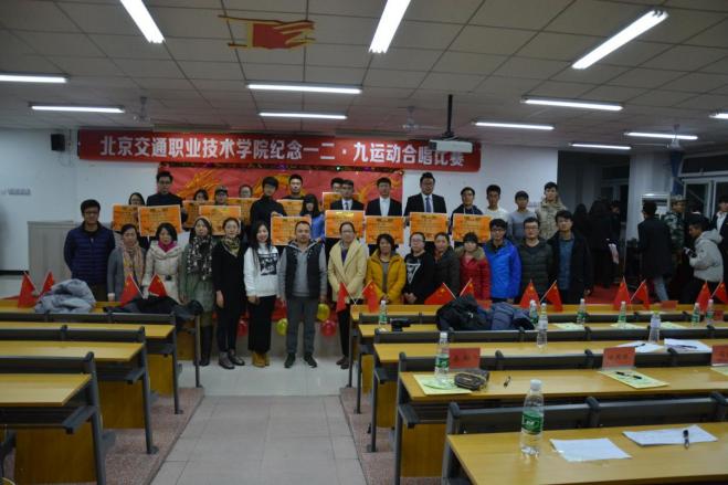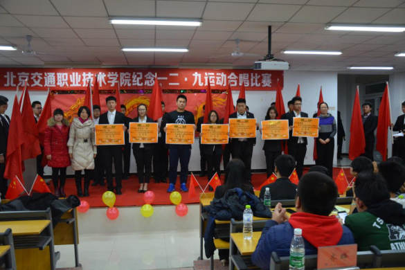 2016年12月8日下午,为隆重纪念一二·九运动81周年,弘扬伟大的爱国主义精神,激发新时代大学生团结友爱、积极向上、自强不息、与时俱进的爱国情操,搭建具有浓郁爱国氛围的活动平台,beat365在线唯一官网登录团委组织部在教一楼122教室隆重举行纪念一二·九运动合唱比赛(决赛)。基础部主任罗锦丽、学生处长兼团委书记刘兴鹤,团委老师李萍,院办公室老师、基础部老师,各系书记及班主任老师出席活动并观看了整场比赛。