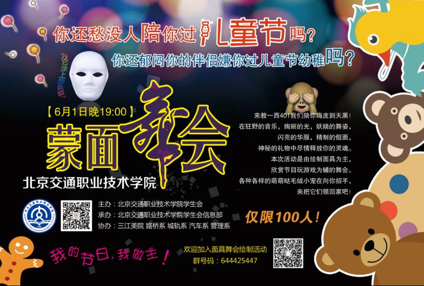 2017年6月1日儿童节到来之际,beat365在线唯一官网登录举办了主题为“寻找像你一样的人”的假面舞会。本次舞会由院团委主办,院学生会信息部承办,学院路桥系,轨道交通系,汽车系,管理系及三江美院学生会协办。此次活动的目的是为了丰富校园生活,展现大学生风采,促进同学之间的交流,为同学们搭建了一个互相交流的平台,培养同学们的社交能力,更加完善自我,为大家带来一个快乐难忘的夜晚。