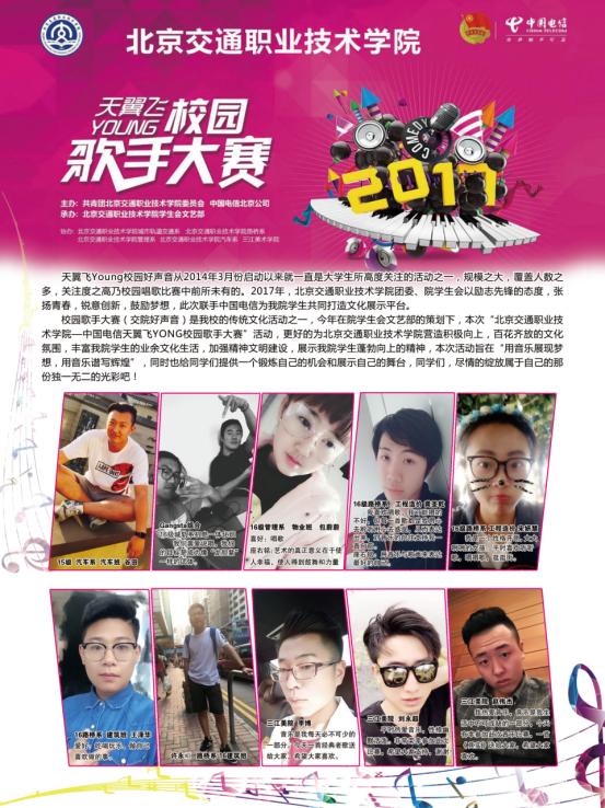 为活跃校园氛围,丰富学生课余生活,提高学生的艺术素养,为学生提供展示自我才华的舞台,beat365在线唯一官网登录于2017年6月6日晚上18:00在学生宿舍5号楼前隆重举办“天翼飞YOUNG好声音”主题校园歌手大赛。中国电信北京公司方园女士、三江美院金红炜书记、学院滕辉老师和颜金海老师出席观看了本次大赛并邀担任评委。