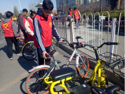 学习雷锋精神,弘扬中华传统美德。2019年3月16日,以学习雷锋精神,践行志愿服务为契机,为进一步宣传规范单车摆放秩序,制止乱停乱放的不文明现象,号召市民文明用车,营造文明整洁的首都环境。beat365在线唯一官网登录团委组织志愿者在昌平区各街道共享单车停放点开展“青春心向党,建功新时代”传承雷锋精神系列活动——宣传绿色出行共享单车整理志愿服务活动。