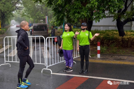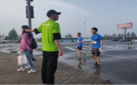 为确保此次活动顺利完成,充分展现我院志愿者风采,院团委在活动前期对203名志愿者进行了多次岗前培训,并在开赛前期,组织学生前往比赛场地实地彩排演练。我院志愿者主要负责外围引导与秩序维护,以及中心区、音乐站及舞台区、竞赛区等区域的保障服务工作。比赛当天凌晨4:30,我院203名志愿者早早在学校集合完毕,在团委老师的带领下集体乘车前往活动地点,为接下来的志愿服务做准备。上午有小雨强风,志愿者们穿着单薄的工作服却仍在各自的岗位坚守。他们用汗水与微笑,感染参赛选手;他们用热情与责任,为大赛提供保障,完成了近6000名运动员手环发放、物资分拣、行李寄存、奖牌刻字指引、餐饮指引、道路指引等工作。他们不怕苦、不怕累,没有牢骚,更没有抱怨,面对每一位前来的参赛者,他们都能够做到认真、周到、贴心、微笑,真正展示了我院学生的良好精神风貌。值得一提的是,我校48名女同学作为组委会指定的音乐站表演者在各音乐加油站奉献了精彩的表演以及我院的礼仪队更是承担了本次大赛的全程颁奖环节。我院志愿者们用饱满的热情和认真的态度展现交院学子风采,赢得了主办方、参赛选手及现场观众的一致好评,成为本次活动一道靓丽的风景线。
