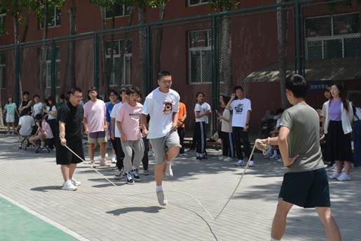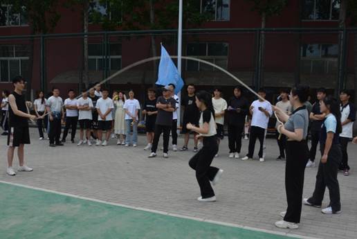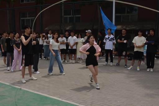 飒爽英姿展风采,同心协力勇争先。为丰富学生校园文化生活,提高团队协作能力,使学生牢固树立健康第一的理念,提高学生身体素质和运动技能水平,加强学院体育文化节品牌活动建设,2023年6月9日,由学院团委主办,院学生会信息部承办的“激昂青春•逐梦未来”体育文化节——团体跳绳比赛在学院篮球场南侧活动区圆满举行。