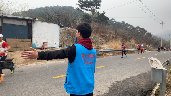 赛事当天,在越野赛道区域,志愿者们为选手提供道路指引;搬运摆放补给品,并向参赛选手进行发放;起终点,志愿者们热情地为选手呐喊助威,及时配合体能不支的选手开展帮扶和救助,他们用言语和行动向参赛选手们提供最有力的支持和鼓励。在主会场区域,志愿者们完成了近千份完赛物资的装袋、整理工作并在各工作岗位上机动服务。选手完赛,志愿者们送上一句句“恭喜完赛”为选手们点赞,同时,高效快捷地将完赛包递到选手手中,及时递上补给品。志愿者们细致专业的服务获得了参赛选手的一致好评。