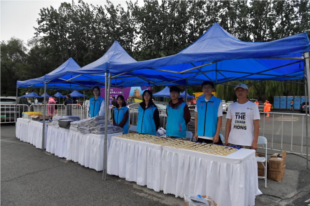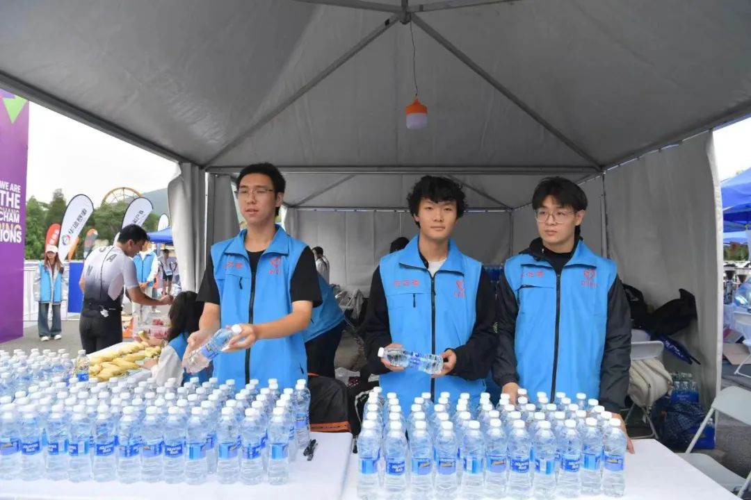 团区委、区志联高度重视赛事服务保障工作,为大力支持此次赛事服务工作,我院团委选派了46名优秀志愿者参与到本次赛事的志愿服务。作为本届赛事指定的志愿者服务队伍之一,我院志愿者分布在起始点,转换区指引、补给点补给、主会场服务、礼仪、检录处等多个工作岗位上,全力保障此次赛事的顺利进行。