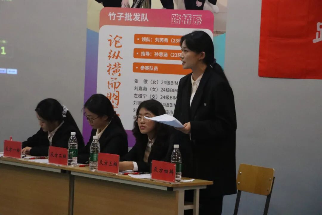决赛现场,双方围绕“00后整顿职场是进步还是鲁莽”展开激烈交锋。正方“你管我对不队”以“职场革新需要青年力量”为切入点,从00后的规则意识、创新思维出发,指出其敢于打破陈规的行动是推动职场生态优化的进步之举;反方“竹子批发队”则立足“职场现实与责任担当”,强调00后在经验不足的情况下贸然“整顿”,可能导致团队协作效率降低,实为鲁莽之举。质询环节中,双方辩手紧扣核心论点,攻防转换行云流水。正方三辩以近年职场维权案例为据,犀利追问反方“如何界定进步与鲁莽的边界”;反方二辩则以“职场秩序维护”为矛,反问正方“个人诉求是否应凌驾于集体规则之上”。自由辩论阶段,双方更是针锋相对,现场金句频出,掌声不断。总结陈词时,正反方四辩分别以“青年责任”与“理性实践”为落脚点,逻辑缜密地升华观点,引发观众深思。最终,汽车系“你管我对不队”凭借严谨的逻辑架构与出色的临场应变,摘得本届赛事桂冠;路桥系“竹子批发队”荣获亚军。“竹子批发队”四辩张傲同学以清晰的逻辑与感染力十足的陈词,荣获“最佳辩手”称号。
