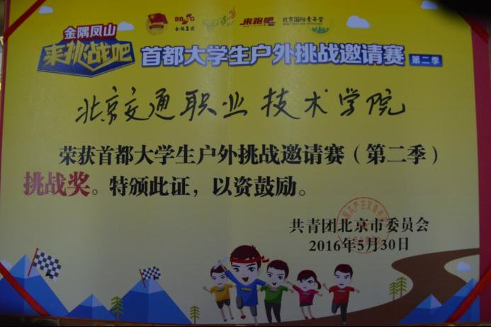 beat365在线唯一官网登录作为北京市高职院校代表,由团委颜金海老师、院学生会于文东同学领队,院团委学生会干部代表参加了此次比赛。由陈佳炜、魏晨、于鹏辉、靳璐阳、祝子悦组成的参赛队荣获北京市挑战奖。