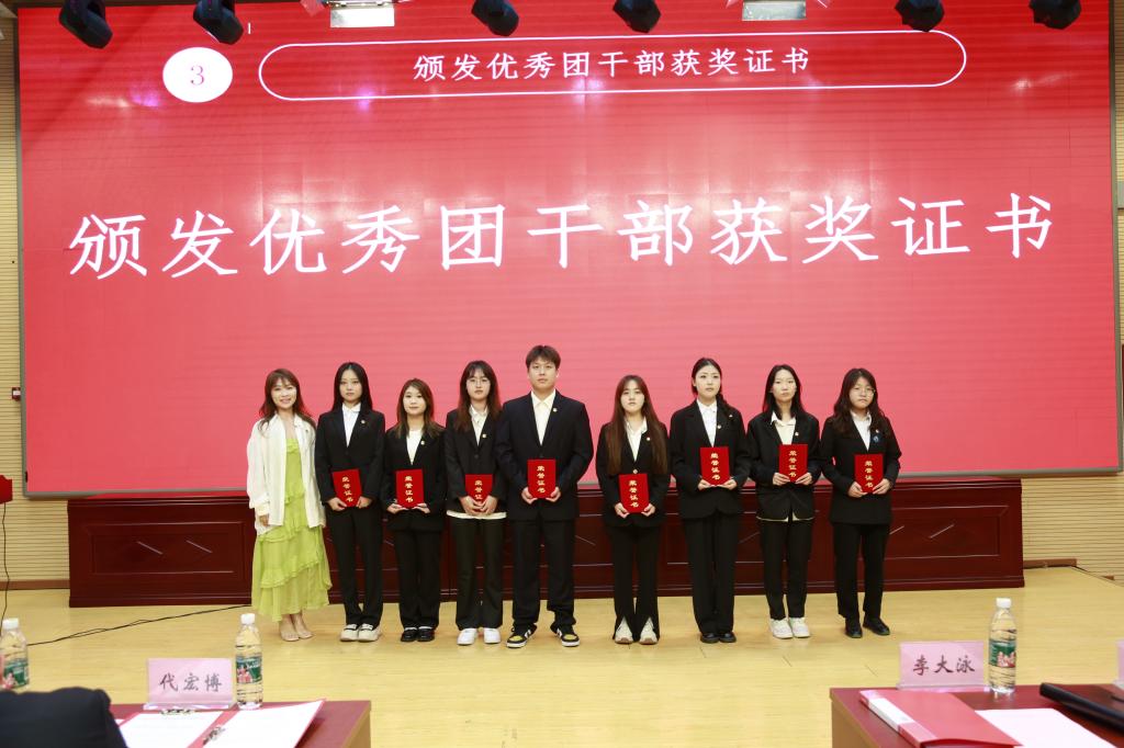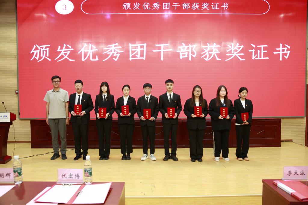 会上,团委书记代宏博老师宣读了《关于表彰2023年度“达标创优”活动评选先进团支部、优秀团员、优秀团干部的决定》,出席大会的领导为受表彰的集体和个人颁发荣誉证书。