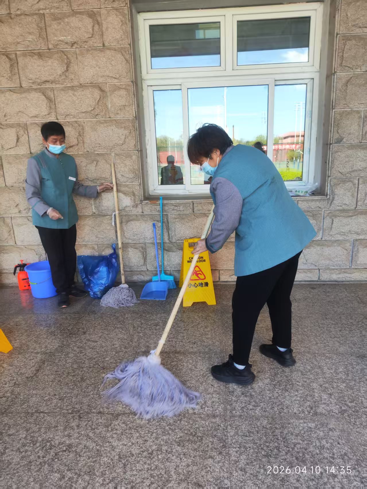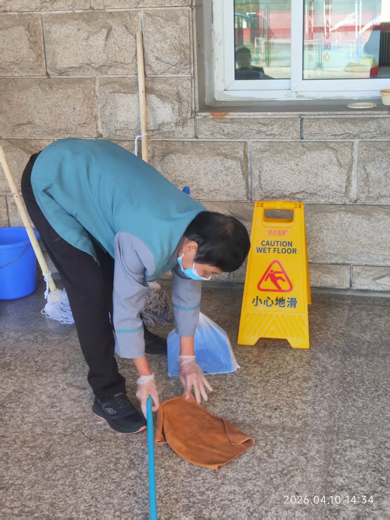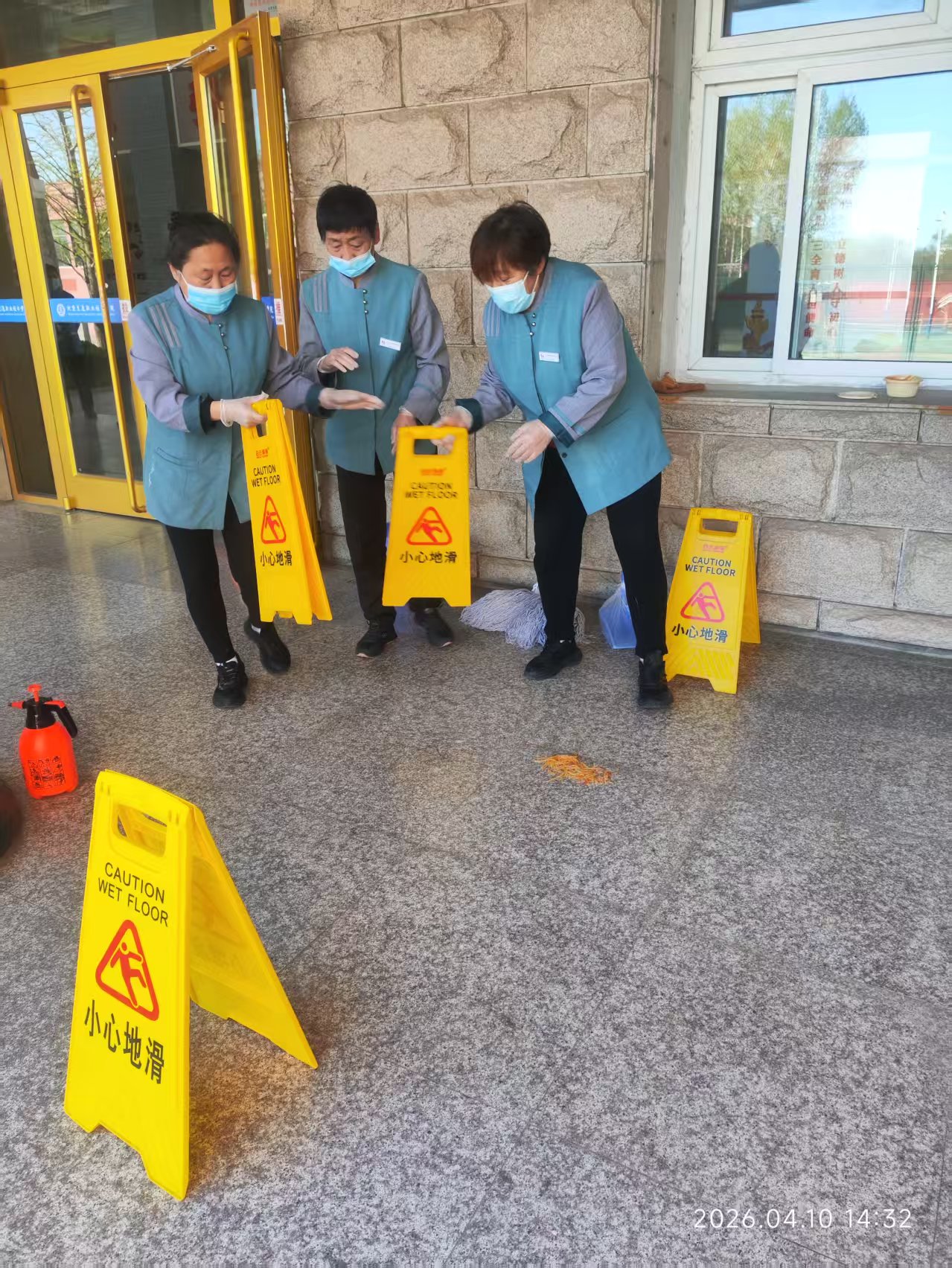 4月10日下午14时,学院总务处组织全体保洁人员在教一楼阶梯教室及教学楼内开展诺如病毒防控专项培训与应急实操演练,总务处副处长李波担任主讲并全程指导。