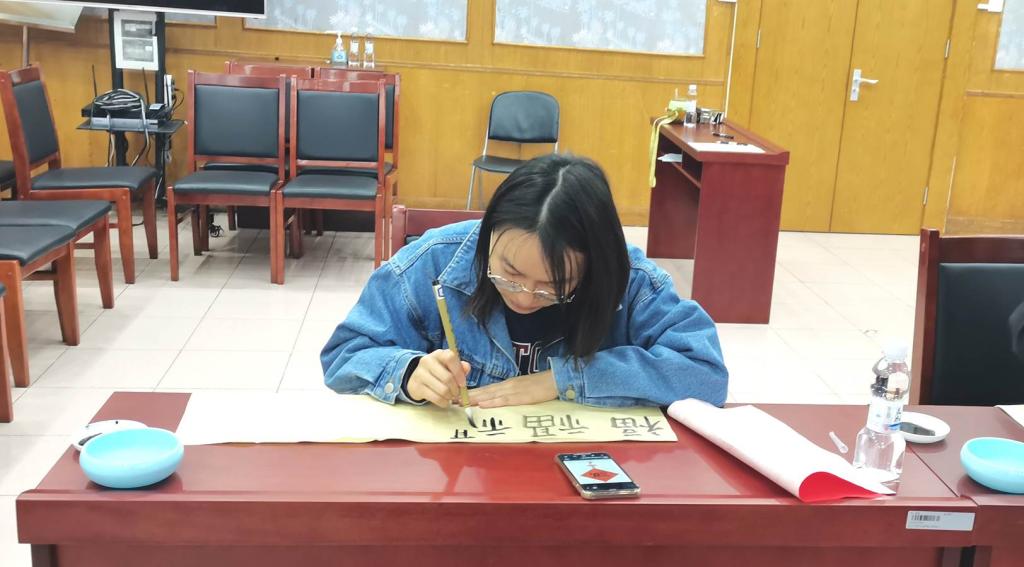 继高校文化助力工程“庆国庆”油画培训后,10月26日,学院与延寿镇联合开展了高校文化助力工程“青春飞扬 墨舞深秋”书法培训活动。