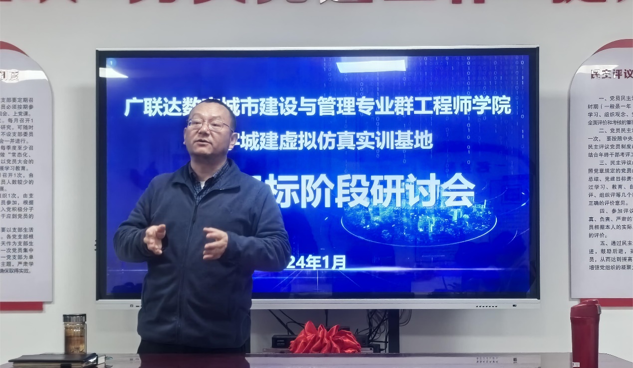 最后杨文生主任总结了目前工程师学院和虚拟仿真实训基地项目的建设情况。杨主任指出,广联达数字城市建设与管理专业群工程师学院和数字城市建设虚拟仿真实训基地是路桥系目前的重点工作之一,项目的建设需要全系教师的共同努力。工程师学院将于2024年5月验收,希望全体教师对照验收要点做好充分准备,顺利完成验收。