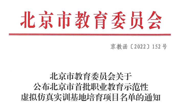 喜报!我院荣获“北京市首批职业教育示范性虚拟仿真实训基地培育项目”称号