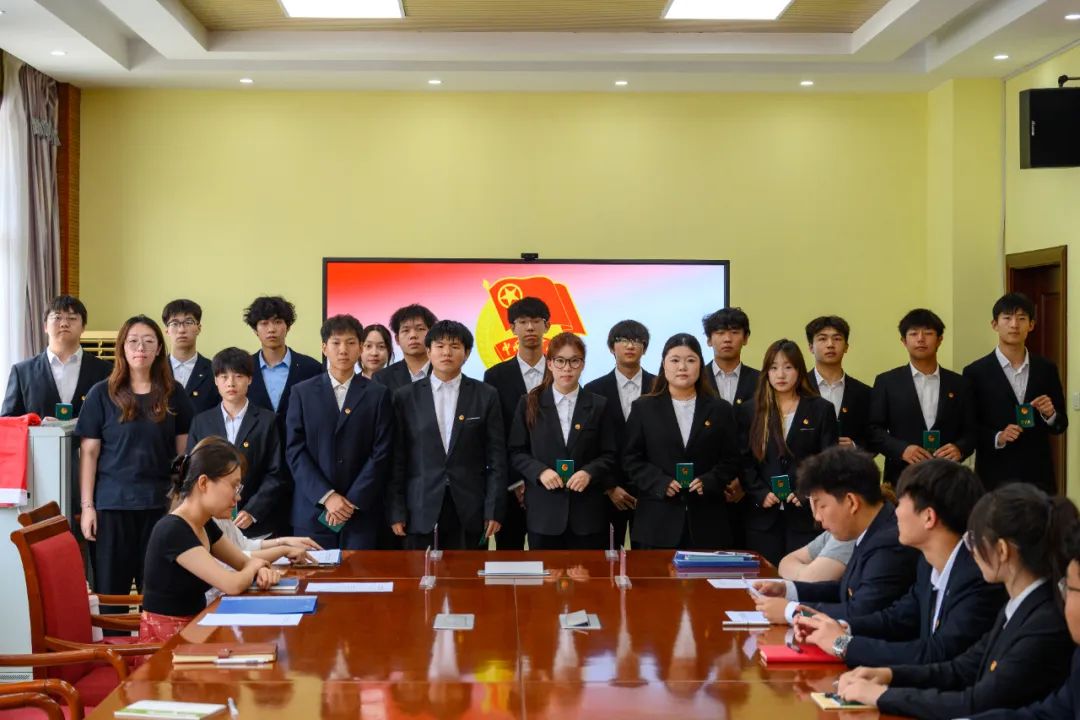 紧接着,轨道交通系党支部书记黄亚楠、团总支书记王圣洁为新团员颁发团员证并佩戴团徽。闪耀的团徽,是荣誉更是责任,佩戴团徽的新团员们身姿挺拔,眼神中满是坚定。团总支学生副书记吴佳益带领新团员庄严宣誓,入团介绍人代表吴佳益宣读团章,一句句誓言、一条条章程,筑牢新团员的信仰根基。