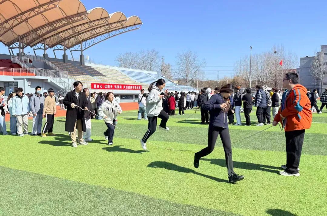 启动仪式结束后,我系围绕“绳彩飞扬,健康启航”主题,在操场指定区域开展了长绳与沙包集体活动。随着长绳有节奏地摇动,同学们依次穿梭跳跃,动作流畅连贯。
