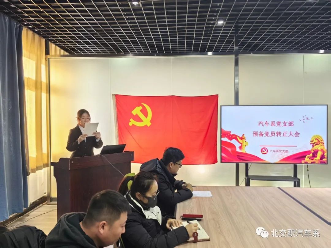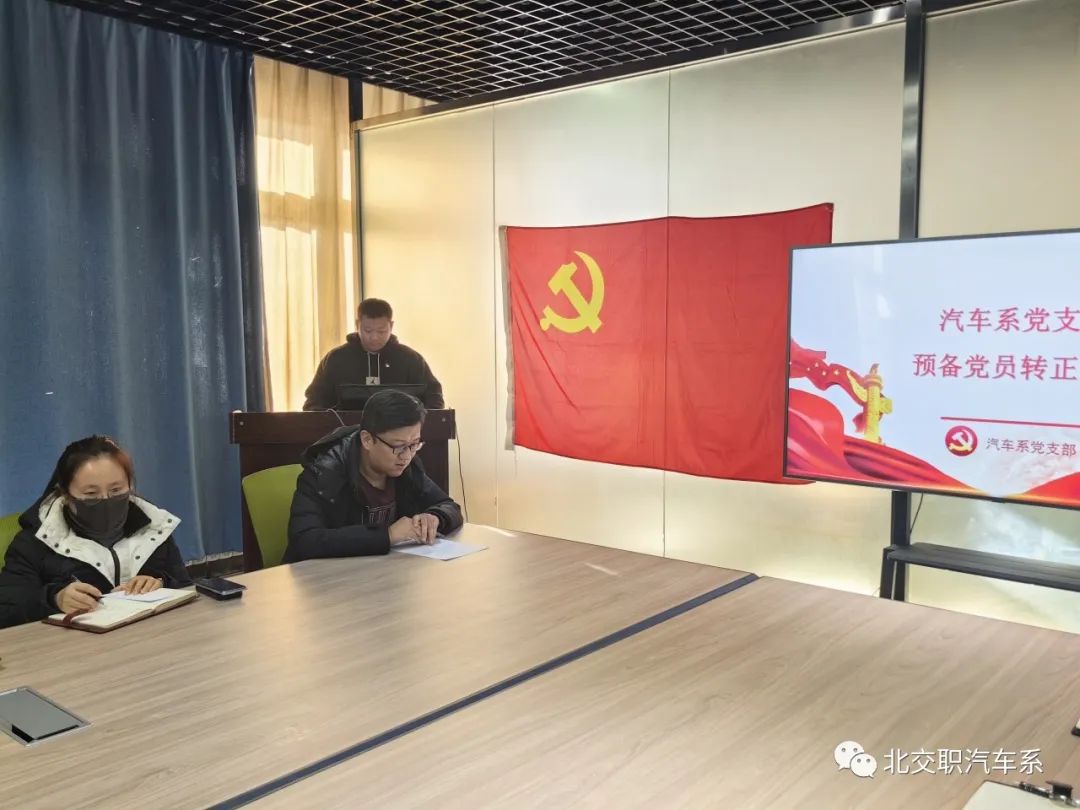 2023年11月30日,beat365在线唯一官网登录汽车系党支部召开预备党员转正大会。党支部组委代宏博同志主持会议。