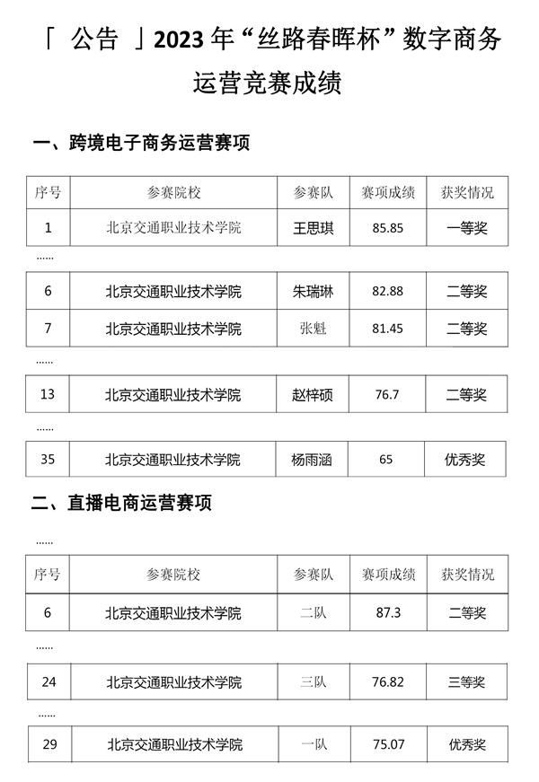 12月9日,2023年“丝路春晖杯”数字商务运营竞赛圆满落幕。来自京津冀15所院校的180余名学生参与到此次赛事中。我院管理系14名学生参赛并取得一等奖1项、二等奖4项、三等奖1项、优秀奖2项的优异成绩。本次比赛由北京电子商务协会主办,北京市对外贸易学校承办,北京博导前程信息技术股份有限公司提供技术支持。学院管理系教师沈晴皓、陈晓燕、刘洁为指导教师。