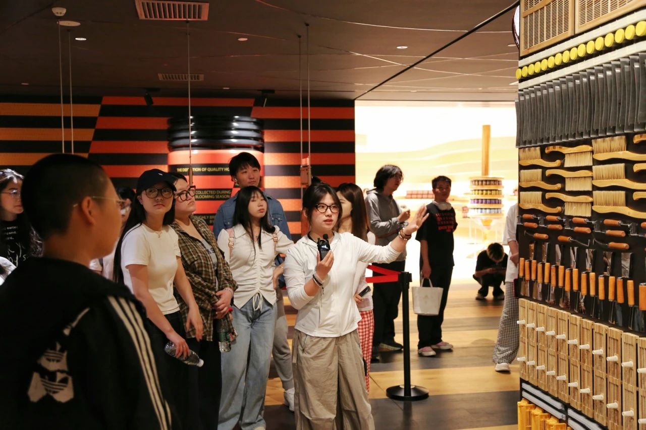 本次活动采用“高年级带低年级”的创新实践模式。在专业教师的指导下,2023级学生作为研学导师负责全程带团实施,分组完成了行程规划、现场讲解、安全预案等工作;2024级学生作为研学对象,沉浸体验研学带团流程及产品设计。知蜂堂资深讲解员石老师全程参与,不仅进行了专业示范讲解,还针对学生表现给予点评及指导。