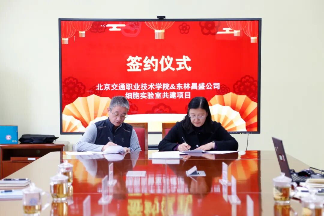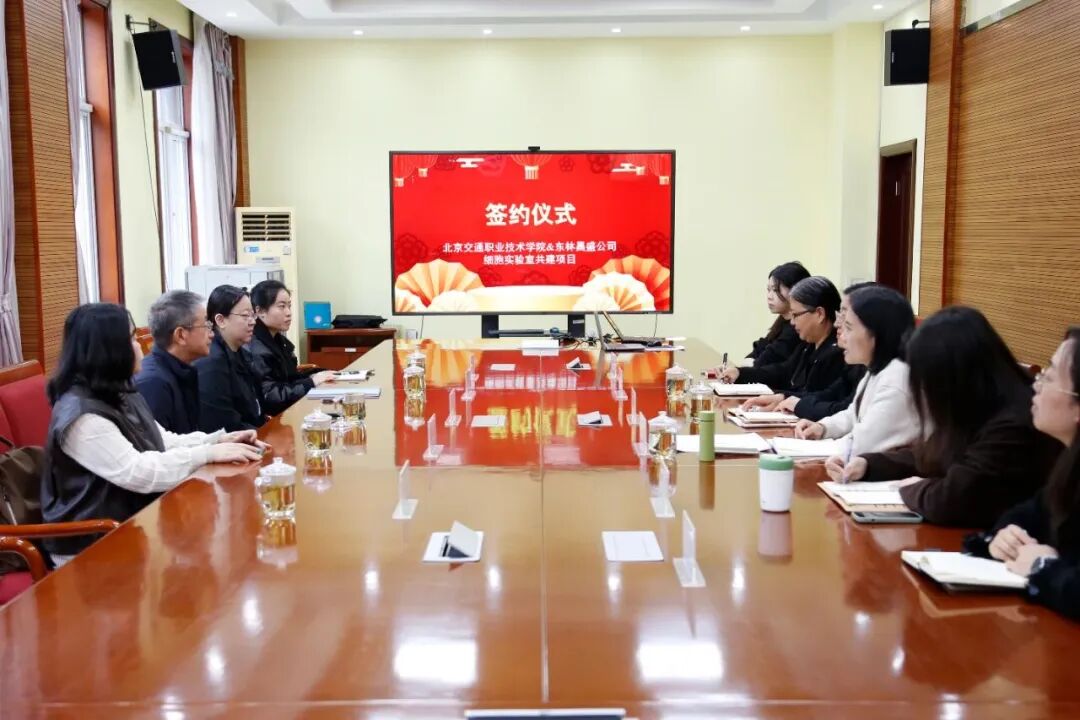 10 月 24 日,beat365在线唯一官网登录与北京东林昌盛生物技术有限责任公司(以下简称“东林昌盛”)在办公楼一层会议室隆重举行 “交通学院-东林昌盛 细胞实验室” 共建签约仪式。东林昌盛负责人周卫东,学院党委委员、副院长罗春红,管理系领导及专业教师、企业方核心团队成员共同出席,双方围绕联合实验室建设、人才培养、科研合作等议题展开深入研讨。