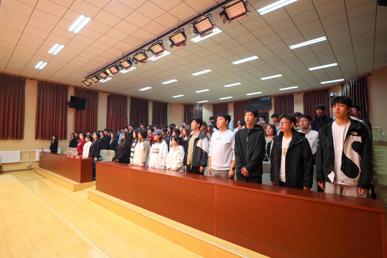 大会在庄严的国歌声中拉开帷幕,全体起立奏唱国歌。