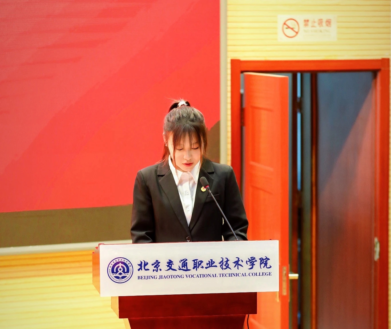 青春是逐梦的最佳时节,理想如领航的璀璨明灯,引领我们踏上全新征程。新任学生干部代表许靖宜登台发言,展现出青春的蓬勃朝气与担当。