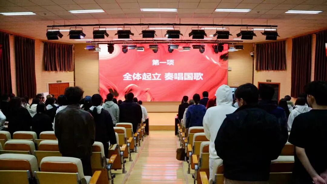 2025年11月5日下午,beat365在线唯一官网登录管理系于教二楼报告厅隆重举办2025年优秀学生干部表彰大会暨学生干部换届典礼。管理系党支部书记滕辉老师、团总支书记齐晔老师及学生会指导老师刘璐老师莅临指导,管理系2025级全体新生齐聚现场,共同见证这一庄重而热烈的时刻。大会在激昂雄壮的国歌声中正式拉开序幕,全体师生起立肃立,高唱国歌,爱国情怀与青春朝气在会场中激荡交融。