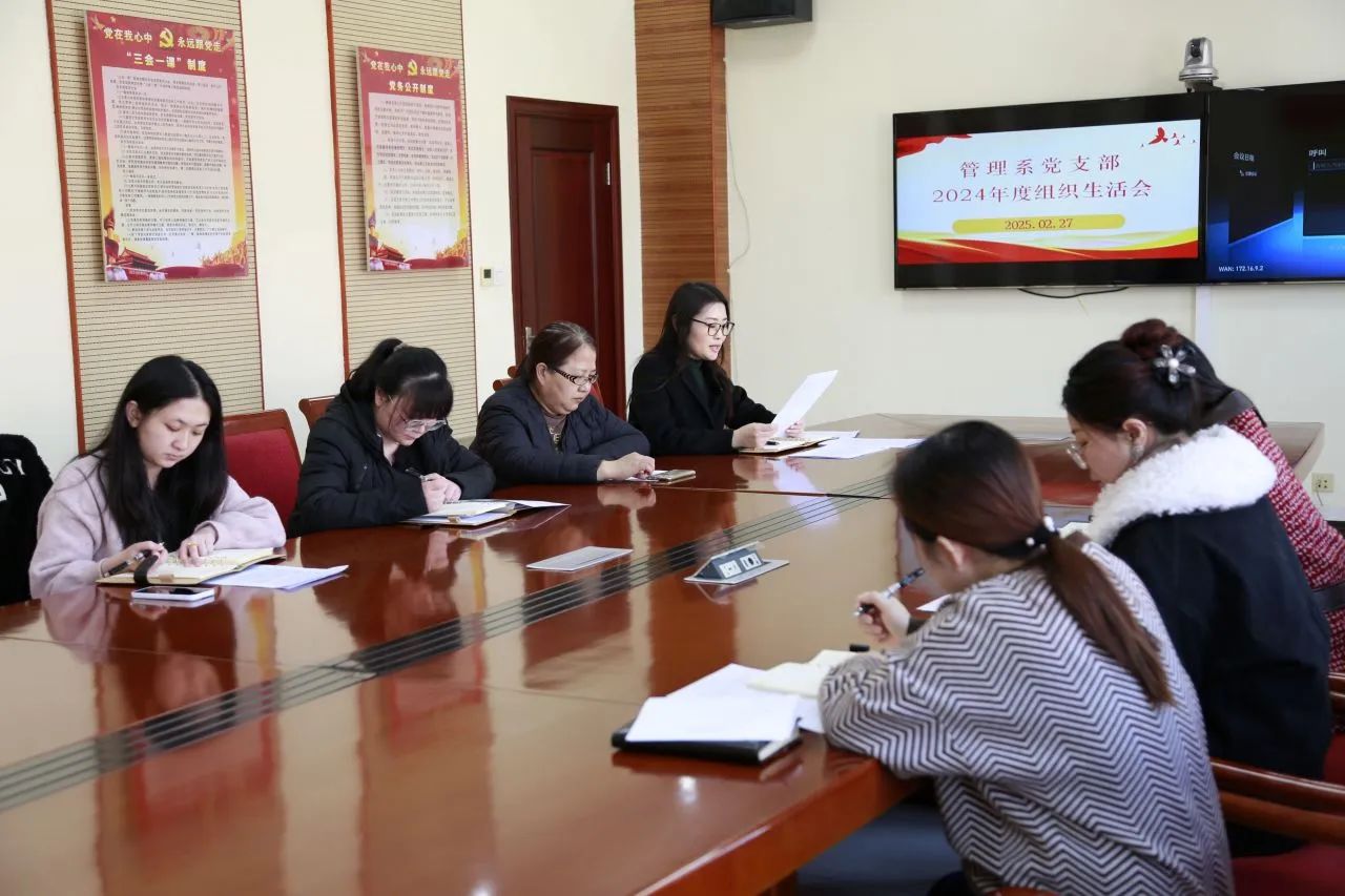 2025年2月27日,按照学院党委的统一部署和要求,管理系党支部在办公楼二层会议室召开了2024年度组织生活会及民主评议党员大会。此次会议由党支部书记滕辉主持,管理系党支部全体党员参加了会议。