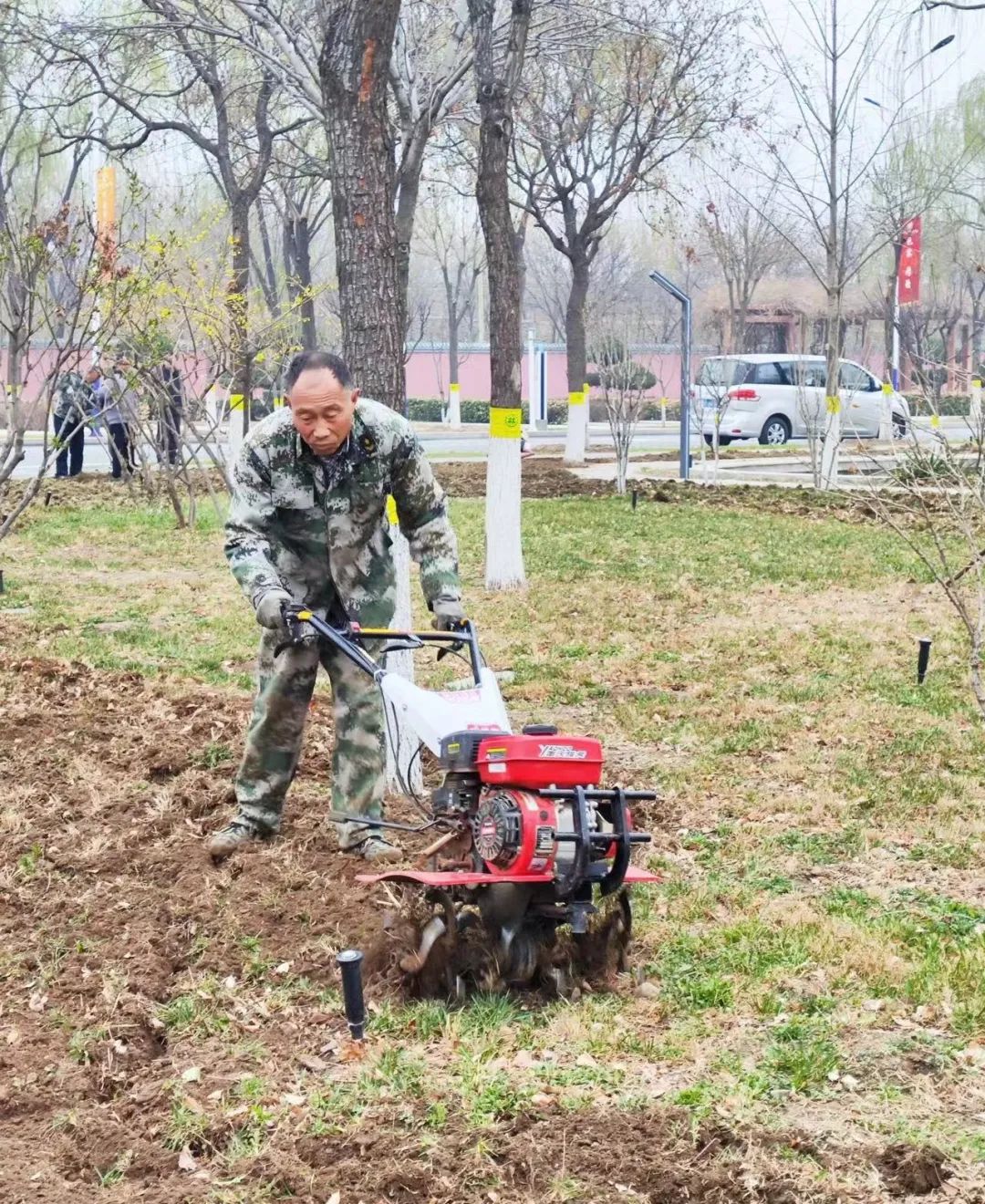 翻垦土地 修剪花枝