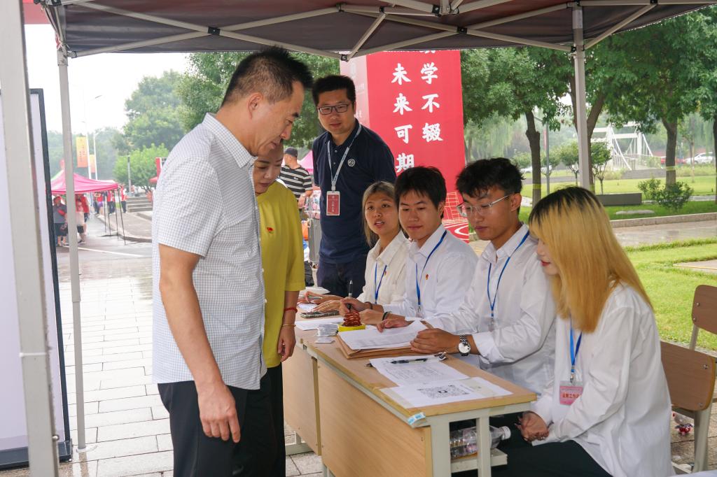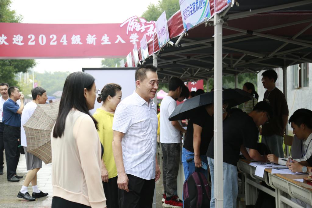 报到期间,学院领导班子来到各迎新点位,详细询问新生报到情况,向新生和家长们表达亲切关怀和问候,现场氛围轻松愉快。