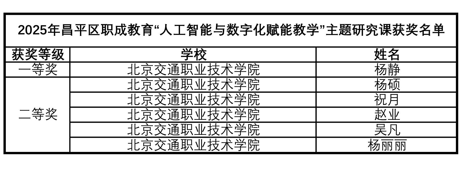 “人工智能与数字化赋能教学”主题研究课比赛中,我院有6名教师获奖,其中一等奖1名,二等奖5名。