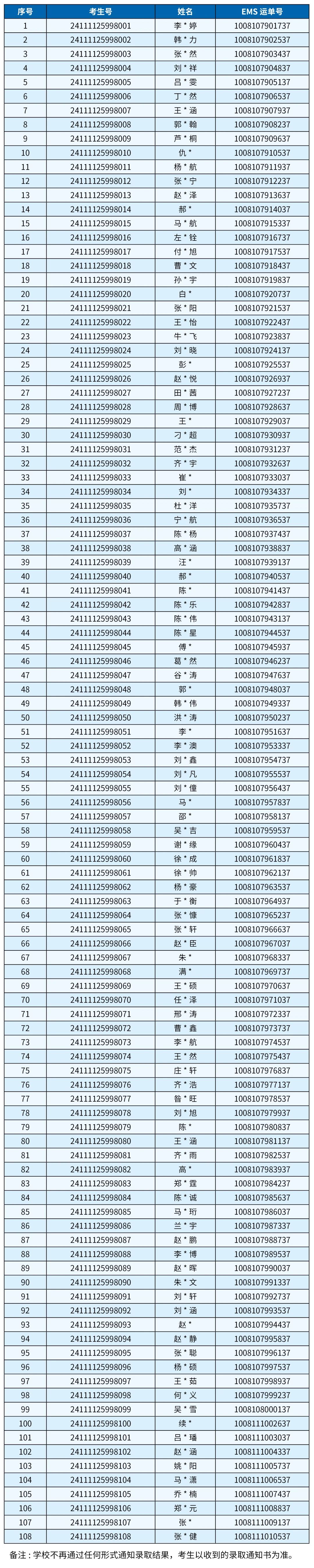 2024年吉林录取通知书运单号