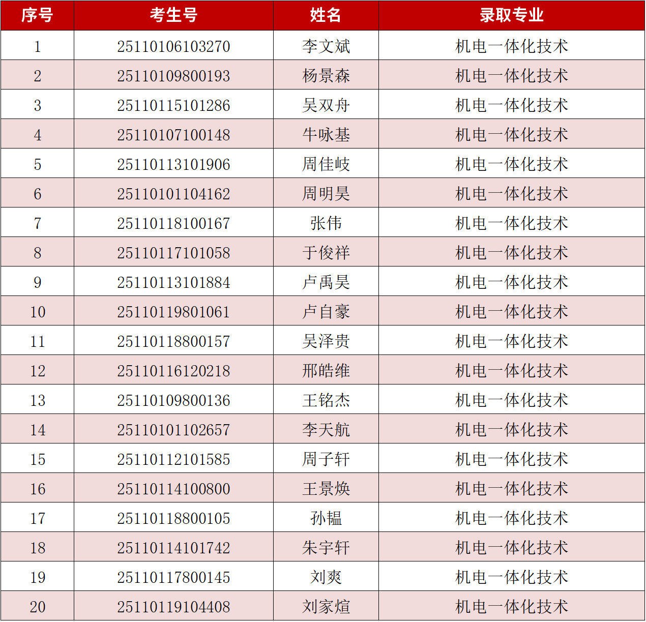 一、预录取名单