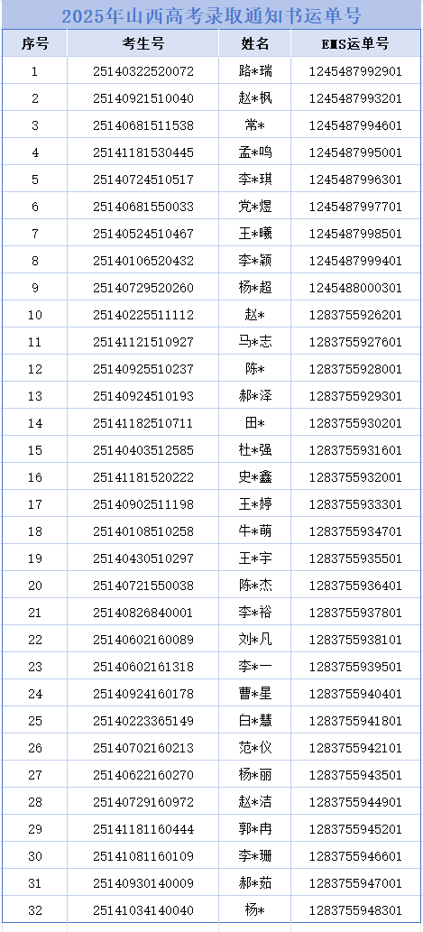 下一篇:最近寄送 | 2025年江西、河南、安徽录取通知书单号请查收!